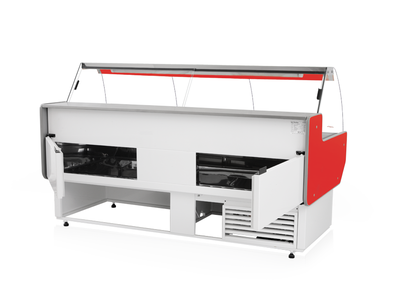 - Dzielone, wyjmowane dno ekspozycji ze stali nierdzewnej „lustro”