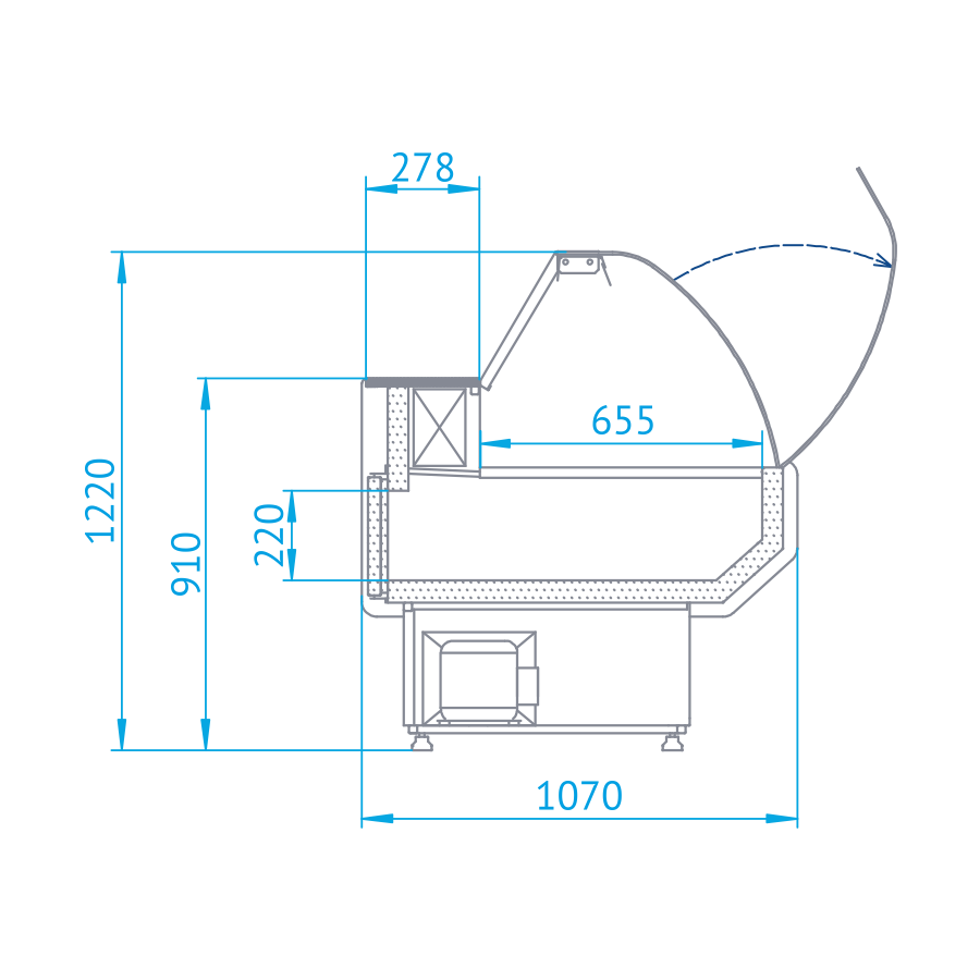 - Niechłodzona przestrzeń magazynowa, pod przechowalnikiem, obok agregatu