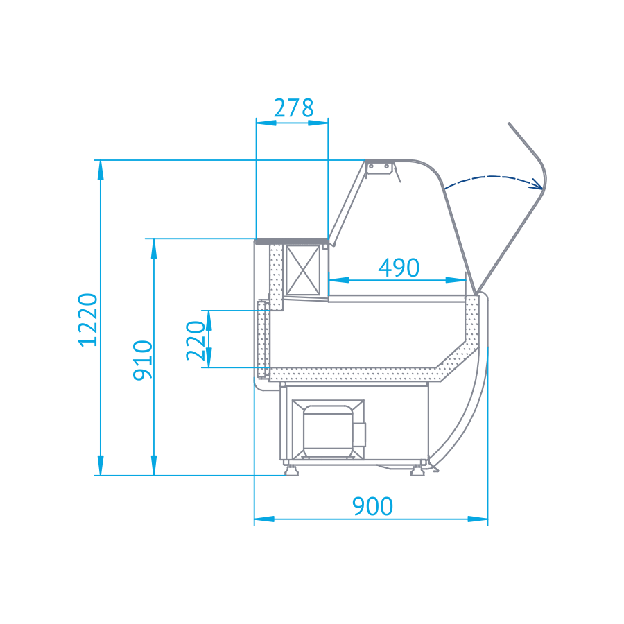 - Podświetlany, kolorowy, dolny plafon urządzenia, wybór kolorów tworzywa HIPS ze wzornika RAPA