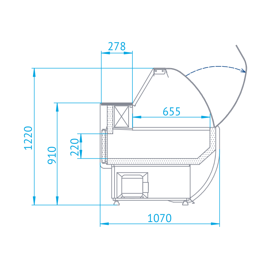 - Niechłodzona przestrzeń magazynowa, pod przechowalnikiem, obok agregatu