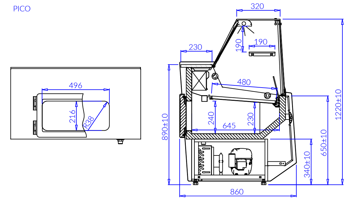 - lampa ze świetlówką LED (barwa do wyboru: biała, cukiernicza lub mięsna „deep pink”)