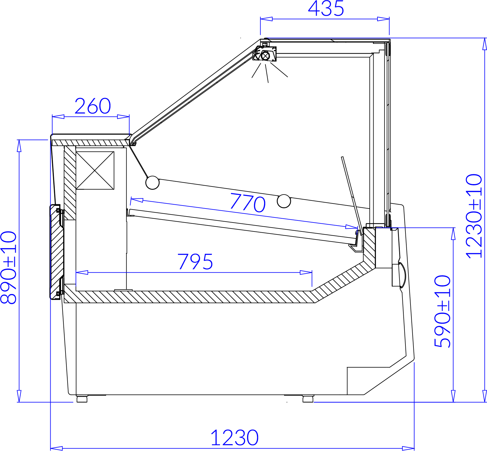 - lampa ze świetlówką LED (barwa do wyboru: biała, cukiernicza lub mięsna „deep pink”)