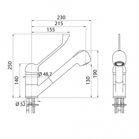 - bateria umywalkowa jednootworowa łokciowa z wyciąganym prysznicem