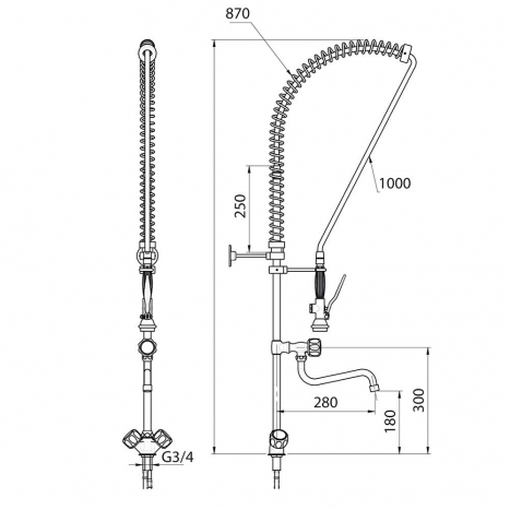 - bateria zlewozmywakowa stojąca, 1-otworowa ze spryskiwaczem i wylewką
