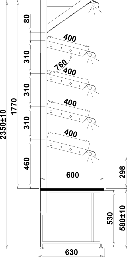 - oświetlenie każdej półki-świetlówka LED (cukiernicza)