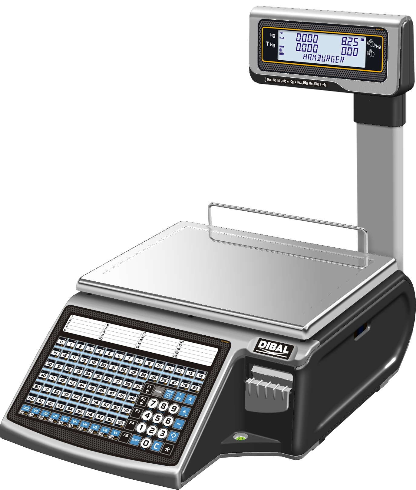 Waga DIBAL M-525T A to kolejny przedstawiciel najnowszej linii produktów Dibala w ofercie NOVITUS - wag serii 500 - MISTRAL. Waga jest wyposażona w zintegrowany na płycie głównej interfejs Ethernet oraz bardzo wydajny mechanizm drukujący. To w połączeniu z nowoczesnym wzornictwem, funkcjonalnością oraz prostotą programowania i obsługi sprawia, że jest to idealne urządzenie dla placówek handlowych średniej i dużej wielkości. Wersja z podświetlanymi wyświetlaczami alfanumerycznymi na wysięgniku.
