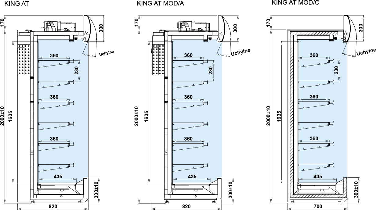 - półki ekspozycyjne z możliwością zmiany wysokości oraz kąta zawieszenia